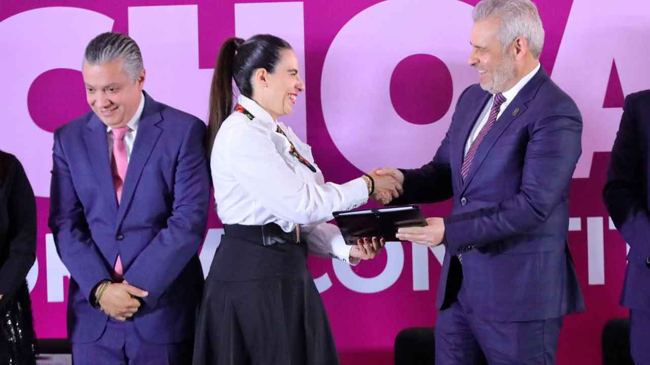 El mandatario firmó la propuesta, recibida por la diputada presidenta de la Mesa Directiva del Congreso local, Giulianna Bugarini Torres, que prohíbe a los Gobiernos estatales contratar deuda pública más allá del periodo constitucional para el que fueron electos, para no comprometer el futuro de los michoacanos.