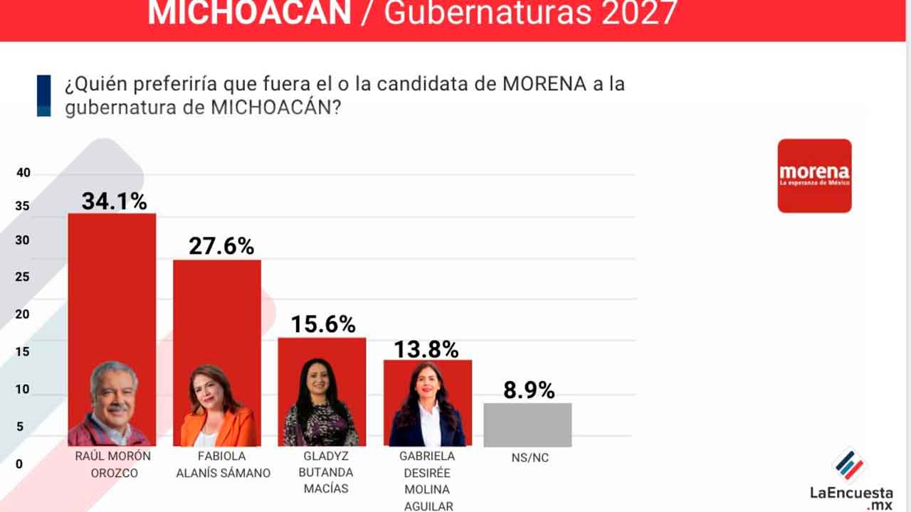 Morelia, Mich., 18 de diciembre de 2025.- La más reciente medición de La Encuesta MX, correspondiente al cierre de 2025, confirma el excelente momento político de Fabiola Alanís Sámano, quien se posiciona como la mujer con mayor preferencia entre la militancia y simpatizantes de Morena para la candidatura al gobierno de Michoacán en 2027, con una ventaja clara y consistente frente a otras opciones femeninas del movimiento.
