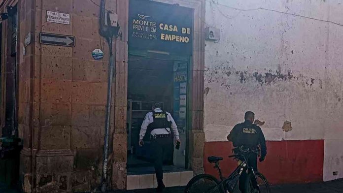 Morelia, Mich.- Sábado 20 de diciembre de 2025.- Dos sujetos desconocidos perpetraron un robo con violencia en una casa de empeño ubicada en el Centro Histórico de la ciudad de Morelia, indicaron autoridades policiales.
