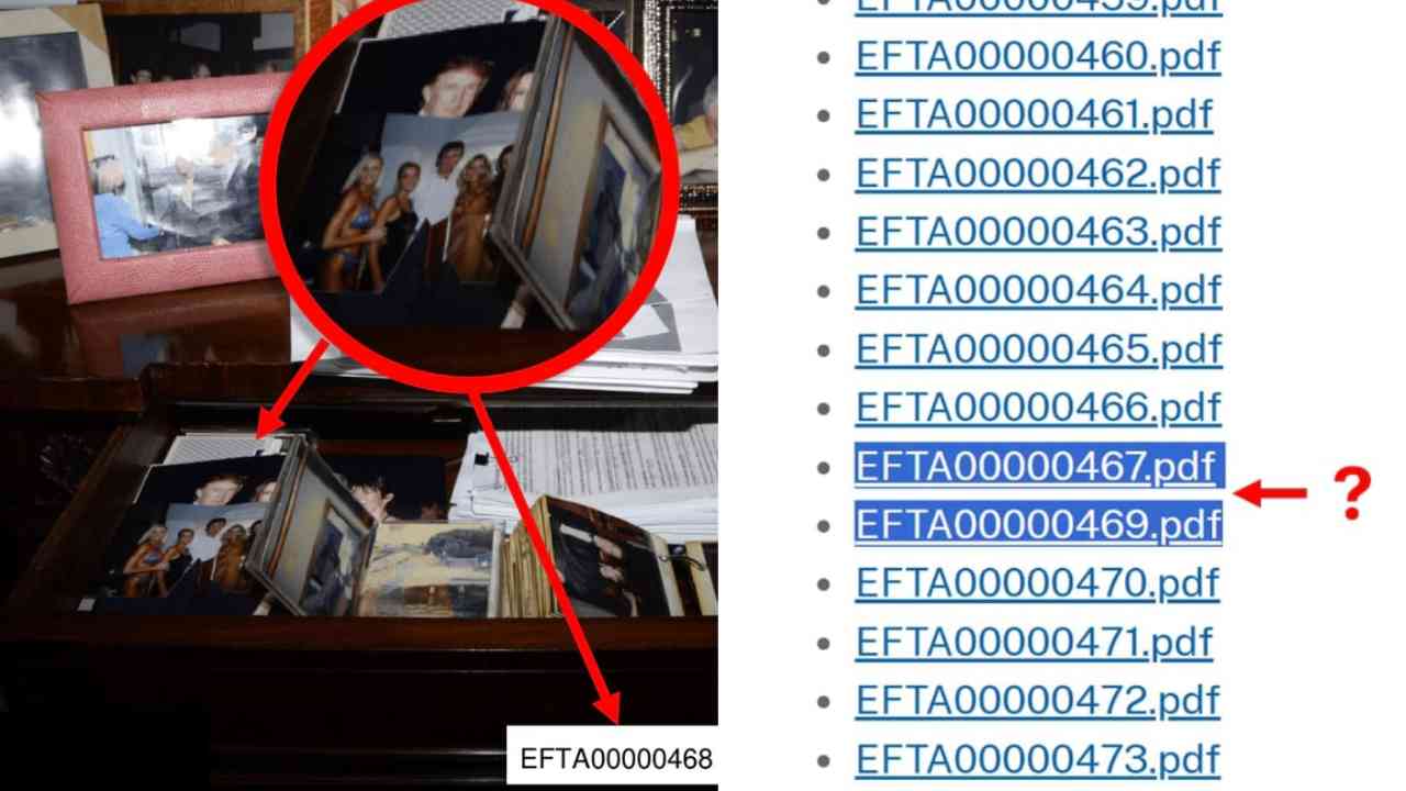 La liberación parcial generó críticas inmediatas, ya que varios expedientes fueron publicados con tachaduras extensas o quedaron fuera del paquete final. Entre los documentos omitidos se encuentra el archivo 468, señalado por contener fotografías y referencias en las que aparece el propio Donald Trump, lo que ha incrementado el cuestionamiento sobre la transparencia del proceso.