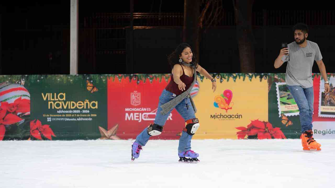 Morelia, Michoacán, 20 de diciembre de 2025.- La diversión te espera en la pista de hielo de la Villa Navideña que se encuentra en el Centro de Convenciones y Exposiciones de Morelia (Ceconexpo), la cual estará abierta hasta el 7 de enero de 2026.