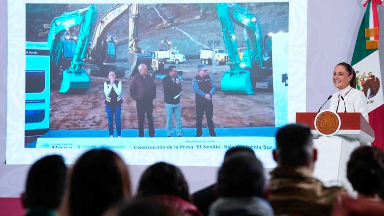 Ciudad de México, 22 de diciembre de 2025.- A través de un enlace desde Palacio Nacional a Baja California Sur, la Presidenta de México, Claudia Sheinbaum Pardo, encabezó el banderazo de inicio de construcción de la Presa “El Novillo” en La Paz, Baja California Sur, que tendrá una inversión entre 2025 y 2027 de 2 mil 400 millones de pesos (mdp), abastecerá 53 litros por segundo y beneficiará a 250 mil habitantes, además de que generará 700 empleos directos y mil 400 indirectos.