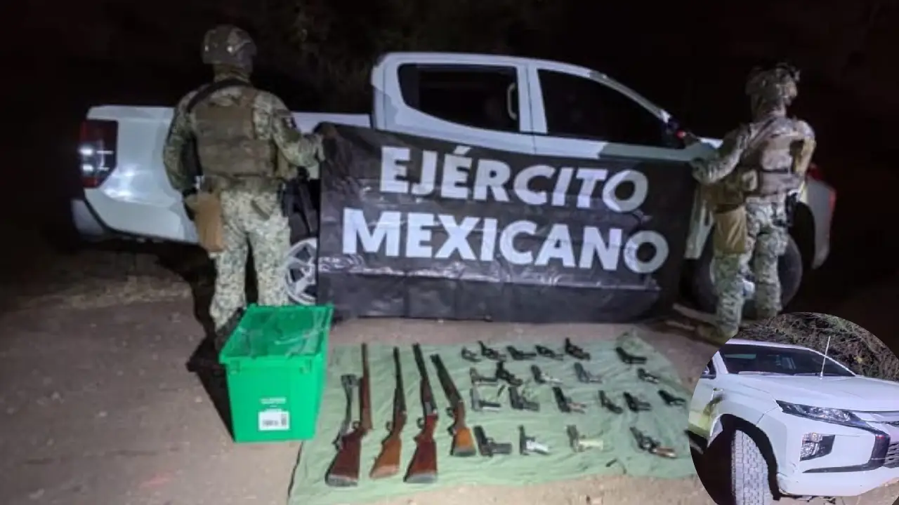 El operativo se llevó a cabo el pasado 20 de diciembre de este año y de acuerdo con la información compartida a Grupo Marmor se aseguraron 26 armas de fuego, 8 cargadores y un vehículo.