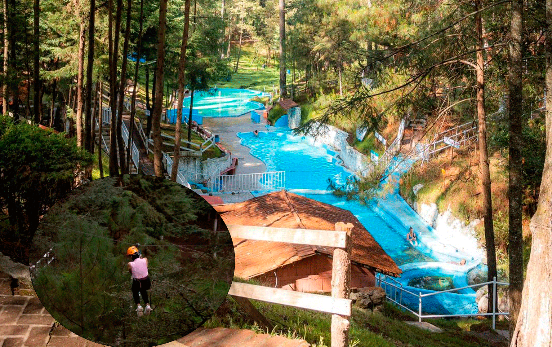 En el sitio no solo hay aguas termales sino también tirolesa, puente colgante, masajes relajantes, área de restaurante y más.