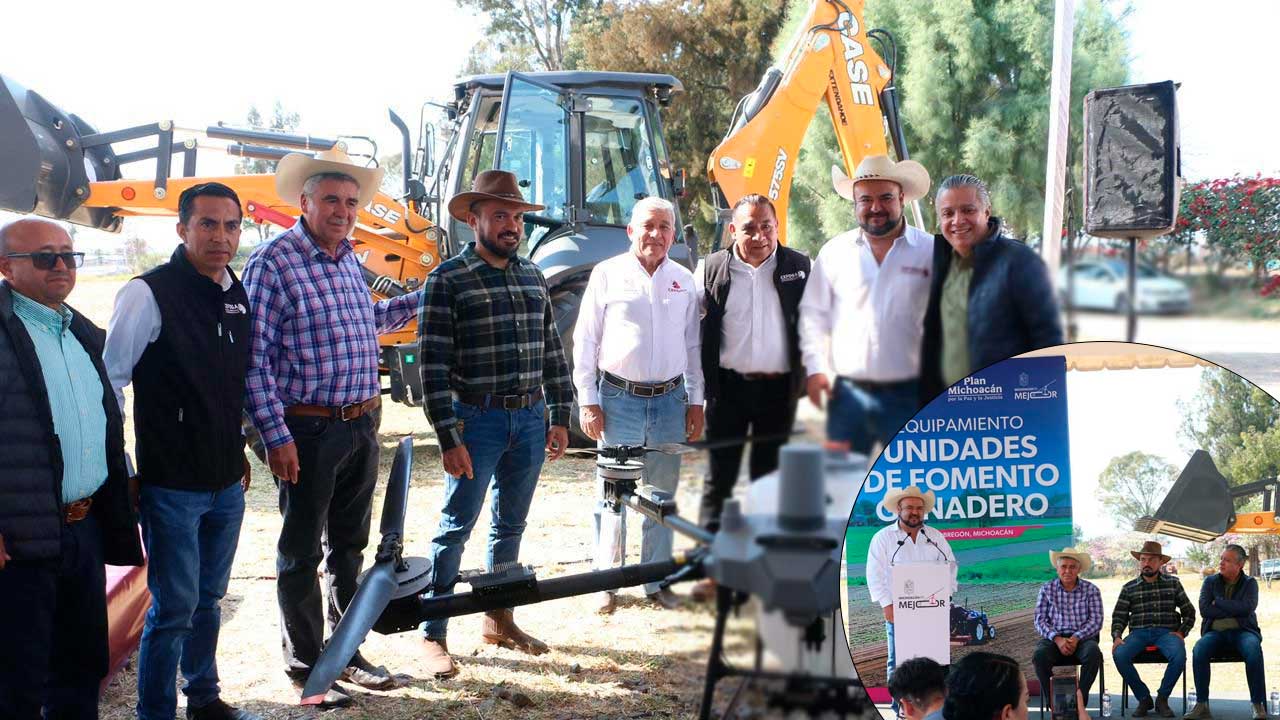Resaltó que entre el equipo se encuentran tres tractores de la marca New Holland, cinco camionetas modelo NP300, cuatro remolques, una retroexcavadora, un dron agrícola, cuatro molinos agrícolas y una camioneta doble rodado, el cual permitirá mejorar las labores agrícolas, el manejo del forraje, el traslado de insumos y el monitoreo de los ranchos.