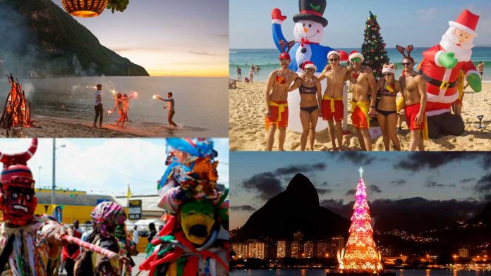 En lugares como Brasil, Australia, Hawái y el Caribe, es común que las familias celebren con actividades al aire libre, como picnics, barbacoas o reuniones en la playa. Ciudades como Río de Janeiro se llenan de festejos junto al mar, mientras que el clima cálido permite prolongar las celebraciones hasta altas horas de la noche.