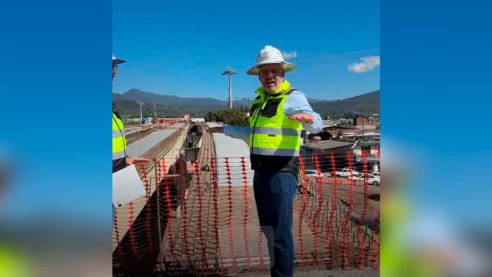 El gobernador de Michoacán, Alfredo Ramírez Bedolla, está de gira por Uruapan y este viernes mostró el avance del 91 por ciento del puente elevado en La Hielera, que dará circulación fluida a más de 30 mil vehículos diariamente.