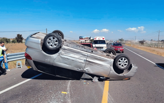 El aparatoso accidente se registró este viernes sobre la carretera La Piedad – Zamora a la altura del acceso al Centro Penitenciario local, donde colisionaron una camioneta Toyota de color plata, con placas PSJ-031-D, misma que volcó tras el impacto y un auto Renault Sandero, también color plata, con matrícula GSB-544-E del estado de Guanajuato.
