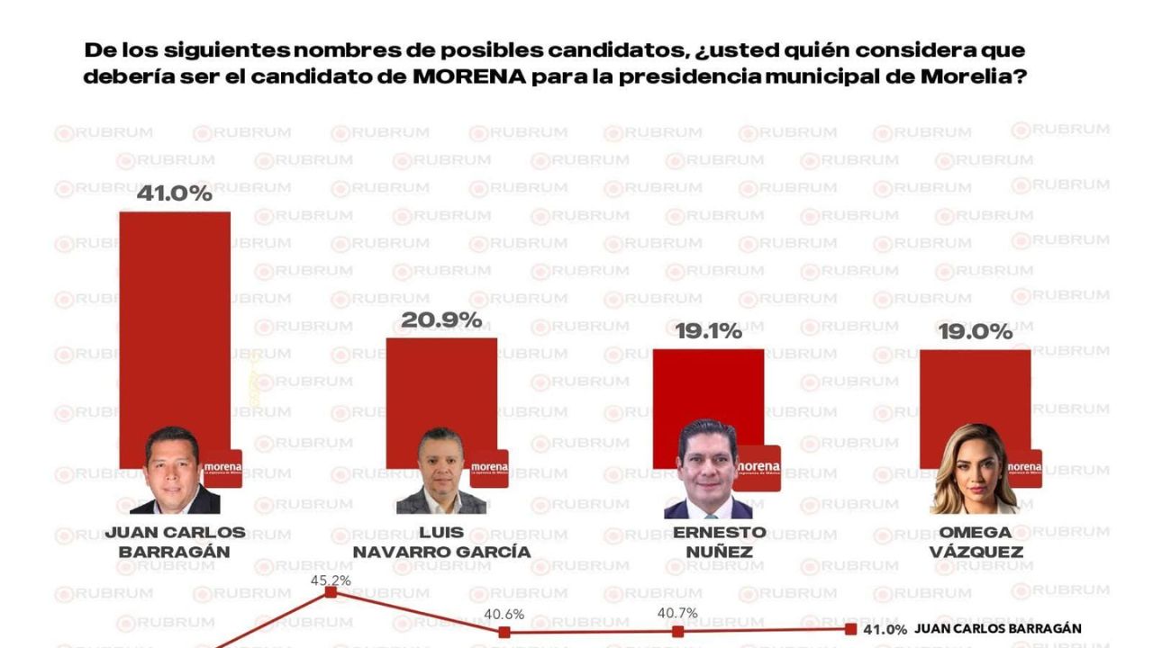 Esta encuesta deja entrever que al interior del partido Morena Juan Carlos Barragán tiene la mejor aceptación de los morelianos para que pudiera ser el próximo presidente municipal de Morelia.