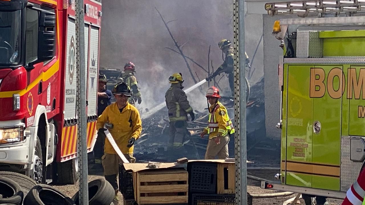 Morelia, Mich.- 27 de diciembre de 2025.- La mañana de este sábado, se registró un fuerte incendio al interior de un negocio de tarimas de madera ubicado en la zona poniente de la ciudad de Morelia, lo que movilizo a los cuerpos de auxilio.
