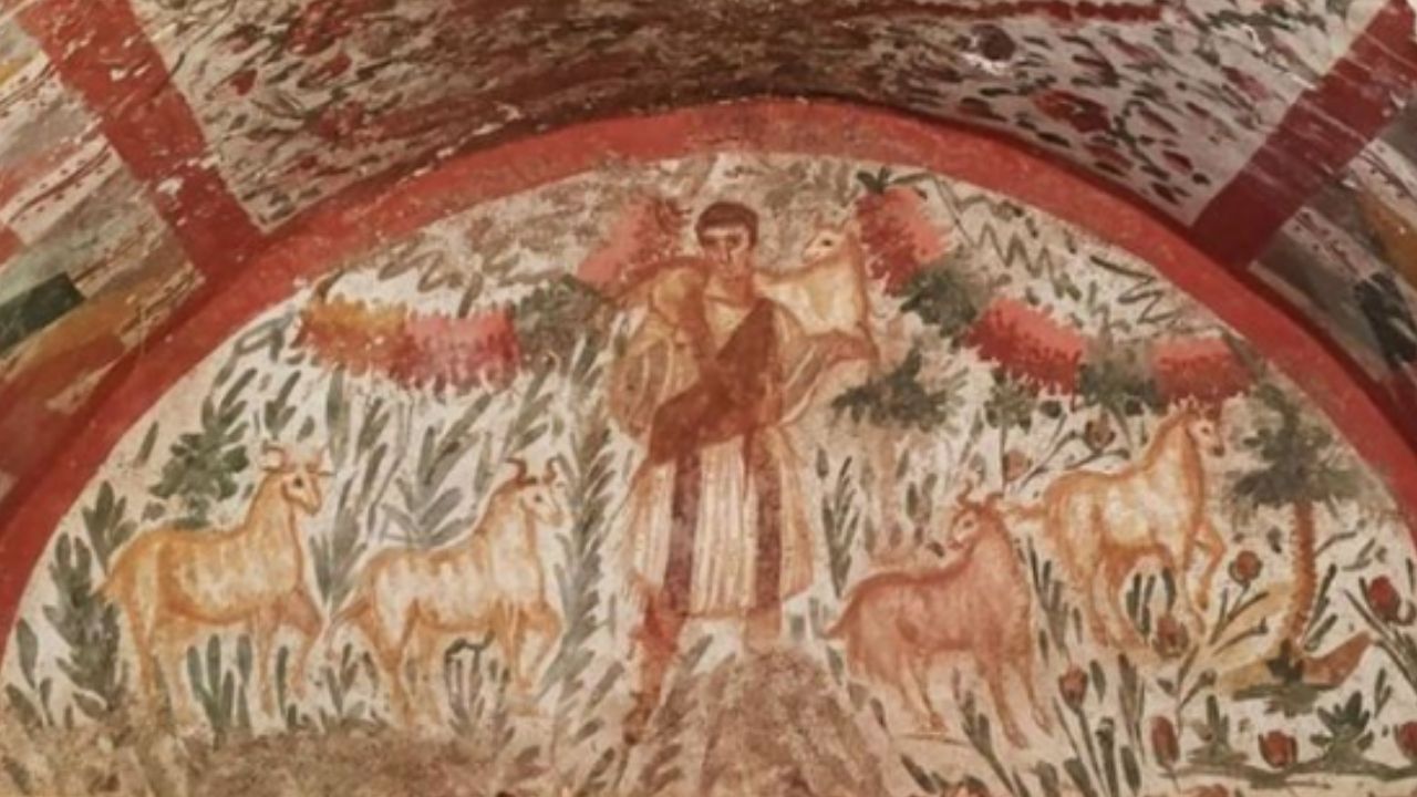 La pintura, que data aproximadamente del siglo III d.C., muestra una representación de Jesús como “Buen Pastor”, un motivo simbólico temprano del cristianismo que representa guía y salvación. A diferencia de las imágenes tradicionales posteriores, este fresco presenta a Jesús como un joven sin barba y con túnica sencilla, cargando una cabra sobre sus hombros, lo que lo convierte en una representación poco común en Anatolia.