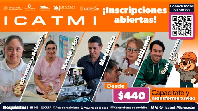 Morelia, Michoacán, 29 de diciembre de 2025.- El Instituto de Capacitación para el Trabajo del Estado de Michoacán (Icatmi) informó que se encuentran abiertas las inscripciones en línea para el próximo ciclo que dará inicio el 12 de enero de 2026, con el objetivo de facilitar el acceso a oportunidades de desarrollo en todo el estado.