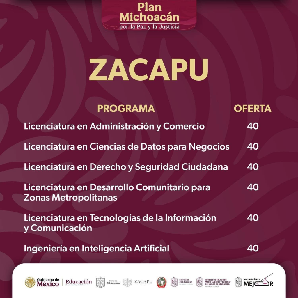 La sede Zacapu ofrecerá carreras acordes a los retos de estos tiempos, pensadas para fortalecer el desarrollo social, económico y tecnológico del municipio y la región, entre ellas: