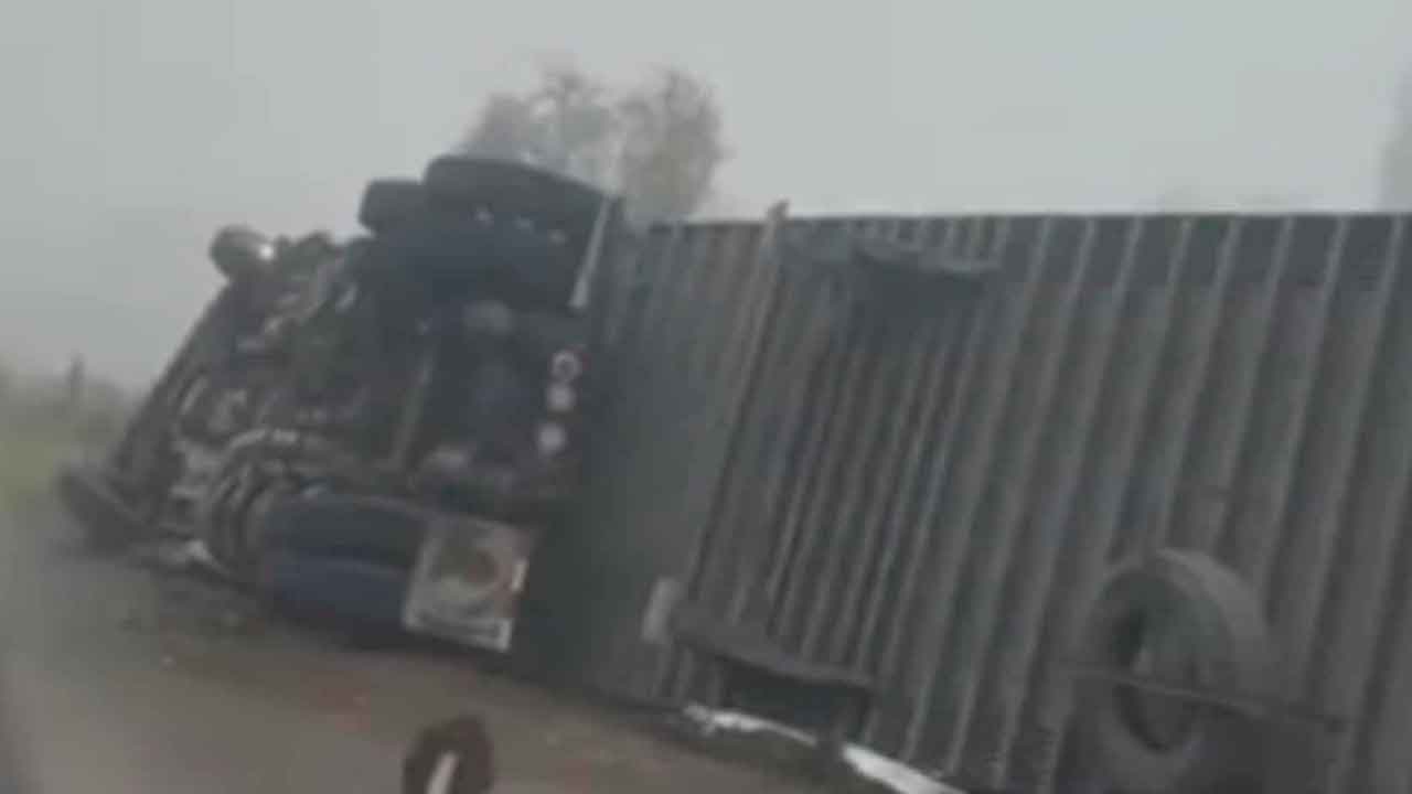 Pátzcuaro, Mich.- Lunes 29 de diciembre de 2025.- Un tractocamión volcó durante la mañana de este lunes sobre la carretera Pátzcuaro-Quiroga, percance que movilizó a los cuerpos de emergencias, informaron fuentes policiales.