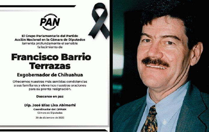 A través de redes sociales, la bancada panista expresó sus condolencias a la familia y allegados del exmandatario. El exsenador Gustavo Madero confirmó que el deceso ocurrió la tarde del 29 de diciembre y destacó a Barrios como un líder que impulsó la participación ciudadana en Chihuahua durante los años ochenta, en la lucha contra la corrupción y el autoritarismo.