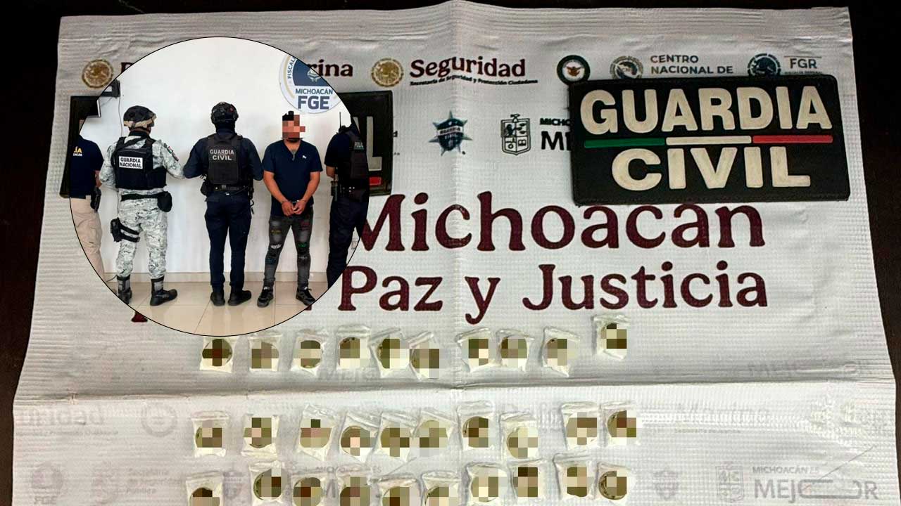 Durante una acción operativa interinstitucional en la colonia El Sabinito, en Zamora, elementos de la Guardia Civil, Defensa, Guardia Nacional y Policía Municipal detuvieron a un hombre en posesión de 46 envoltorios de una sustancia con las características propias de la metanfetamina; asimismo, se le aseguró una motocicleta marca Italika. Al detenido se le relaciona con su probable participación en delitos de alto impacto, como extorsión y homicidio doloso.