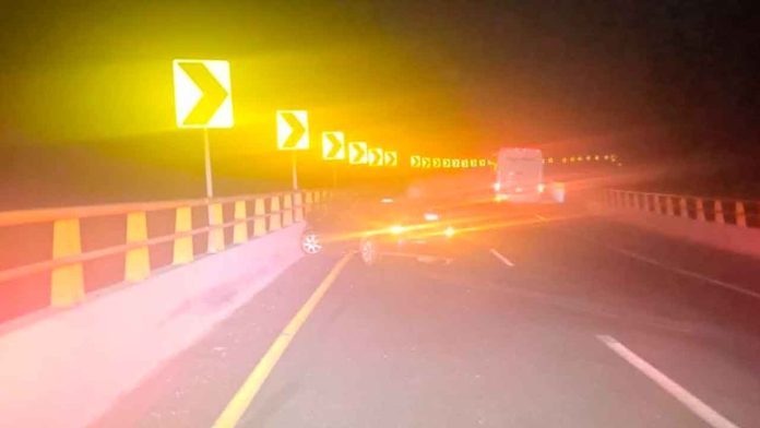 Salvador Escalante, Mich.- 5 de enero de 2026.- Un accidente de tránsito ocurrido durante la madrugada de este lunes en la autopista Siglo XXI provocó la movilización de cuerpos de auxilio, luego de que un automóvil se impactara contra el muro de contención en el viaducto Zirahuén.