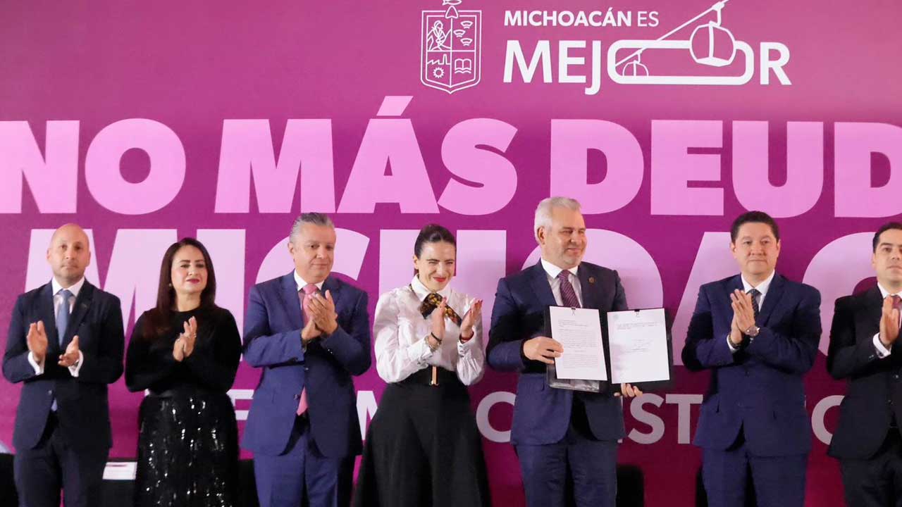 Morelia, Michoacán, 7 de enero de 2026.- Tras puntualizar que durante la presente administración estatal se han invertido más de 40 mil millones de pesos en infraestructura, el gobernador Alfredo Ramírez Bedolla señaló que, con la reforma constitucional propuesta al Congreso del Estado, Michoacán ya no será rehén de la deuda pública del pasado.