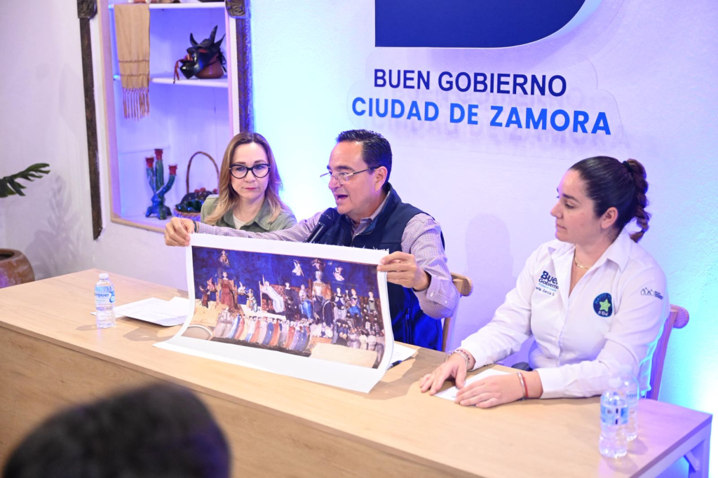 Durante una rueda de prensa realizada en la Casona Pardo, acompañado por la regidora de Educación, Cultura y Turismo, Paula Ayala Curiel, y la directora de Educación y Cultura, Karla Sánchez García, el alcalde resaltó que los festejos representan un reconocimiento al esfuerzo y dedicación de quienes fundaron Zamora hace más de cuatro siglos, así como de todas las generaciones que, con trabajo, fe y compromiso, han contribuido a construir la ciudad que hoy se conoce.