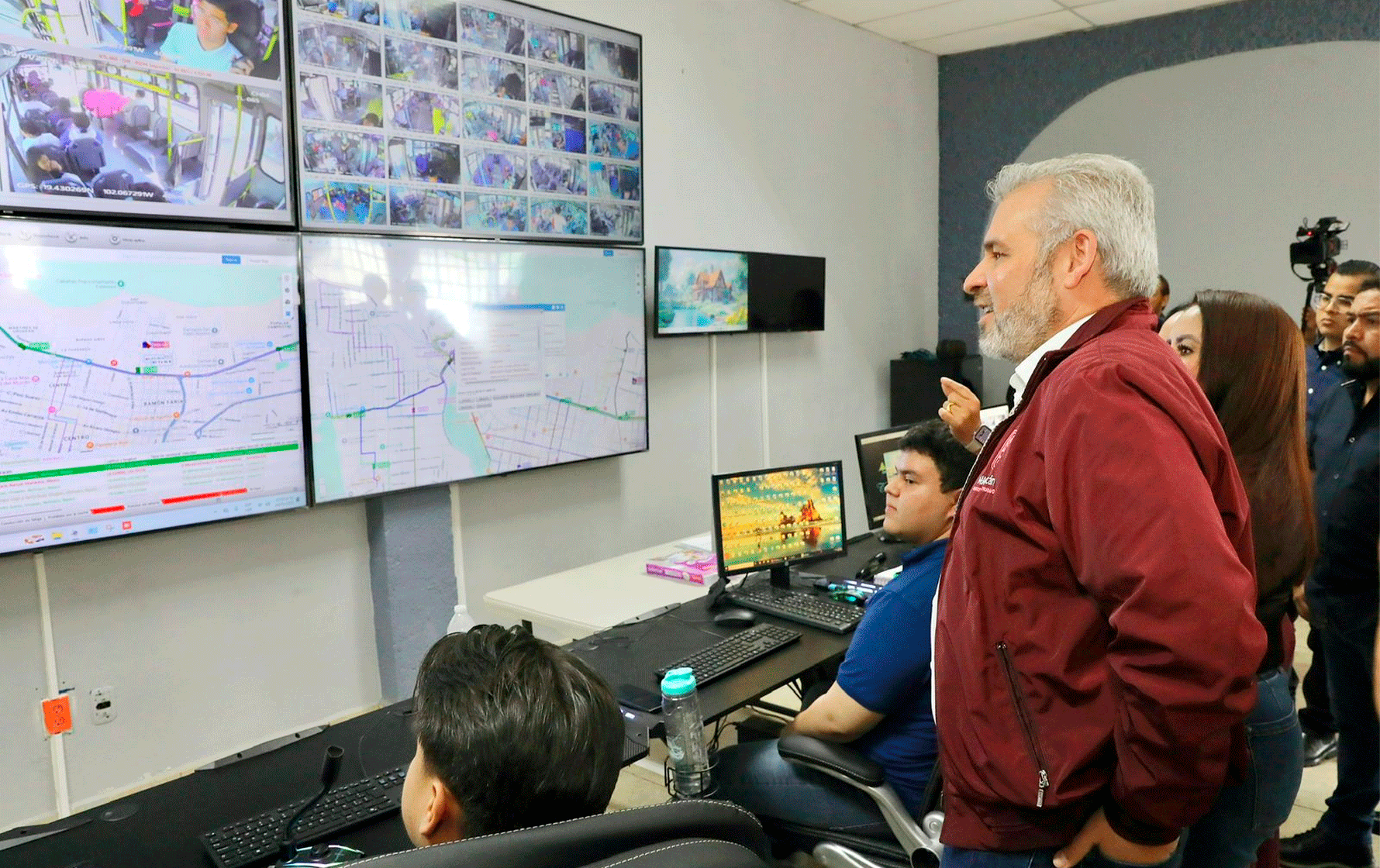 En visita por estos centros conectados en tiempo real a 200 unidades de las cooperativas Tata Lázaro y Colectivos de Uruapan, el gobernador y los secretarios de Desarrollo Urbano y Movilidad, Gladyz Butanda Macías y de Seguridad Pública, Antonio Cruz Medina, constataron la funcionalidad del sistema que permite acceder a información operativa como frecuencia, número de usuarios, tiempo de recorrido por vuelta, kilometraje por unidad, entre otros, creando reportes personalizados para cada ruta.