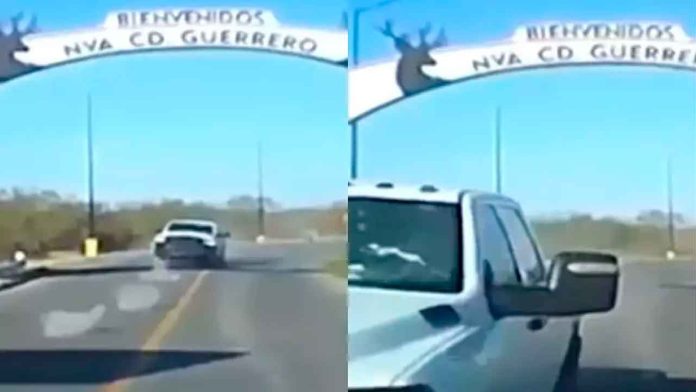 Durante la refriega, uno de estos vehículos fue alcanzado por los disparos y terminó incendiado cerca del arco de bienvenida del municipio, donde se aprecia la leyenda “Feliz Viaje”. Ante la presión ejercida por los elementos federales, los ocupantes descendieron de la unidad y huyeron a pie hacia una zona de maleza, abandonando el vehículo y diverso equipo.
