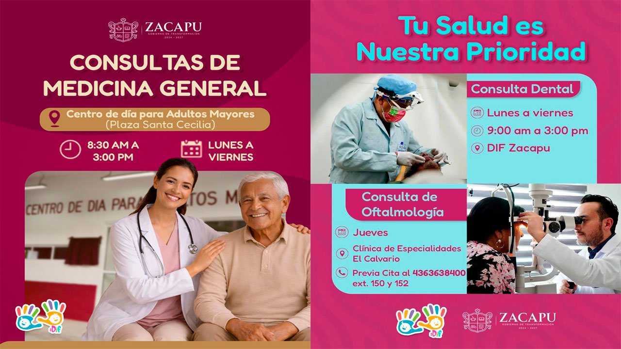 Todos los servicios son completamente gratuitos y forman parte de la estrategia municipal para fortalecer la salud preventiva y la atención médica accesible en Zacapu, bajo el principio de “Unidos por Ti.”