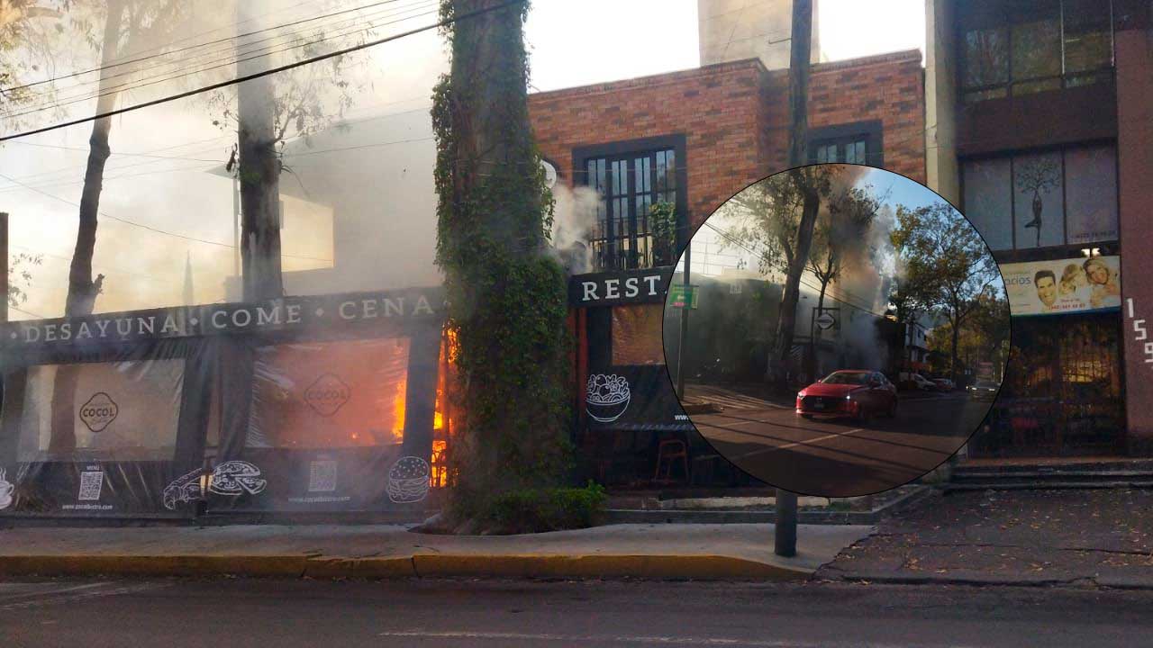 Morelia, Mich.- Miércoles 14 de enero de 2026.- La terraza del restaurante Cocol Bistró ardió en llamas durante la mañana de este miércoles. El negocio se localiza en la colonia Electricistas, al sur de Morelia, indicaron autoridades policiales y de rescate, las cuales agregaron que sólo hubo daños materiales.