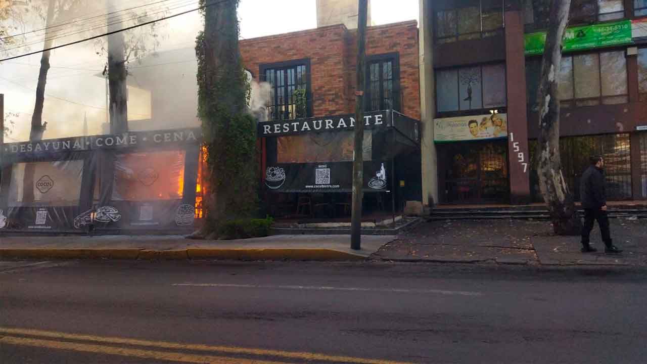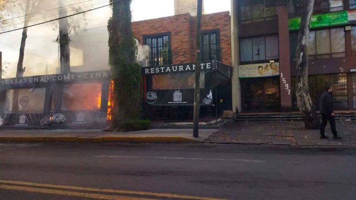 Morelia, Mich.- Miércoles 14 de enero de 2026.- La terraza del restaurante Cocol Bistró ardió en llamas durante la mañana de este miércoles. El negocio se localiza en la colonia Electricistas, al sur de Morelia, indicaron autoridades policiales y de rescate, las cuales agregaron que sólo hubo daños materiales.