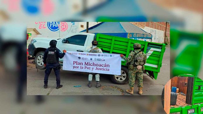 Buenavista, Michoacán. — En el marco de las acciones del Plan Michoacán por la Paz y la Justicia, autoridades estatales y federales localizaron y aseguraron tres camionetas con reporte de robo en un camino de terracería cercano a la comunidad de El Chamizal.