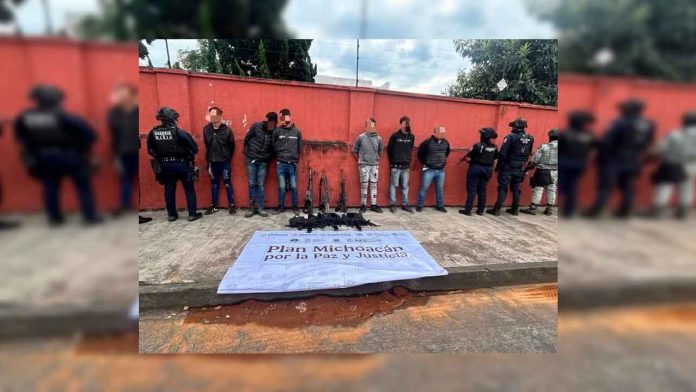 Trascendió que durante un despliegue operativo realizado esta mañana fueron capturados Carlos Iván G. E., de 33 años, Miguel Ángel P. O., de 40 años, Jorge Alberto V. H., de 35 años, Gerardo Antonio A. G., de 30 años de edad, originarios del estado de Jalisco, Hugo Daniel P. P., de 24 años, vecino de Uruapan y Marvin L. R., de 24 años de edad, este ultimo de nacionalidad venezolana.