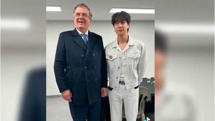 En la grabación se observa un breve intercambio entre Ebrard y Kim Seok-jin, conocido como Jin, integrante de la agrupación de K-pop, a quien el funcionario extendió una invitación para ofrecer conciertos en territorio mexicano, destacando la dimensión del público potencial en el país.