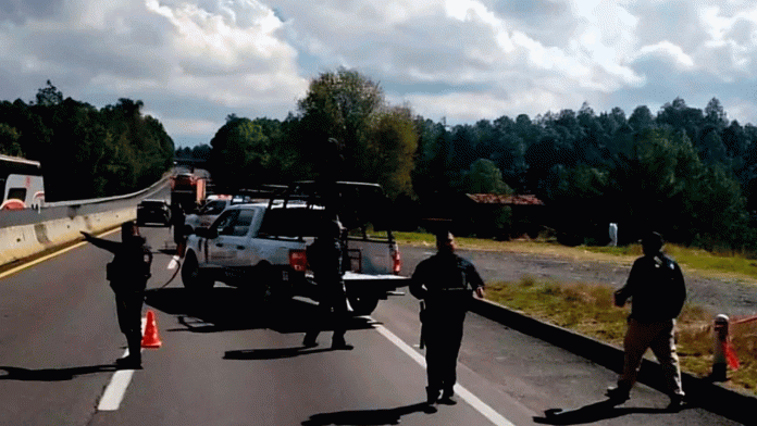 Autoridades federales y estatales se movilizaron tras el hallazgo de tres cuerpos con visibles signos de calcinamiento en la Autopista de Occidente, en el estado de Michoacán.