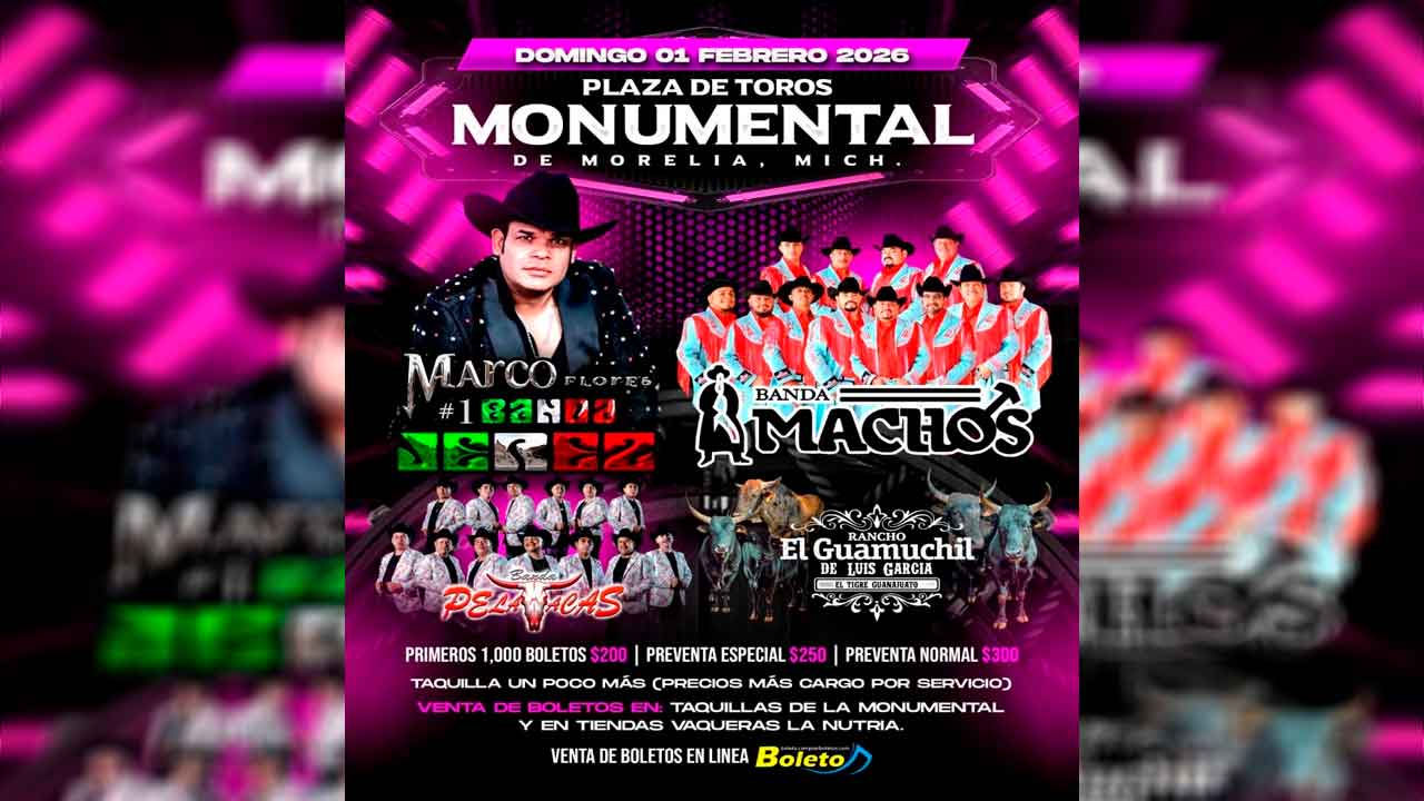 Morelia, Michoacán. La Plaza de Toros Monumental de Morelia será sede de un jaripeo con baile familiar el próximo 1 de febrero de 2026, que reunirá a reconocidas agrupaciones del regional mexicano y la tecnobanda, además de espectáculos ecuestres.