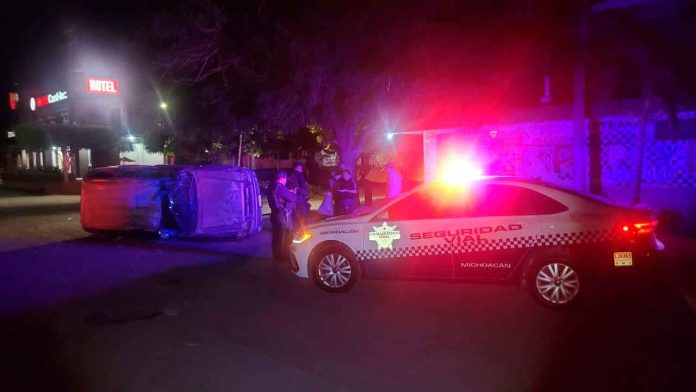 Apatzingán, Mich.- 20 de enero de 2026.- La madrugada de este martes, un hombre resultó lesionado al volcar la camioneta que tripulaba, en la colonia José María Morelos de Apatzingán. Presuntamente el afectado trataba de dar alcance a unos tipos que habían robado a mano armada una motocicleta.