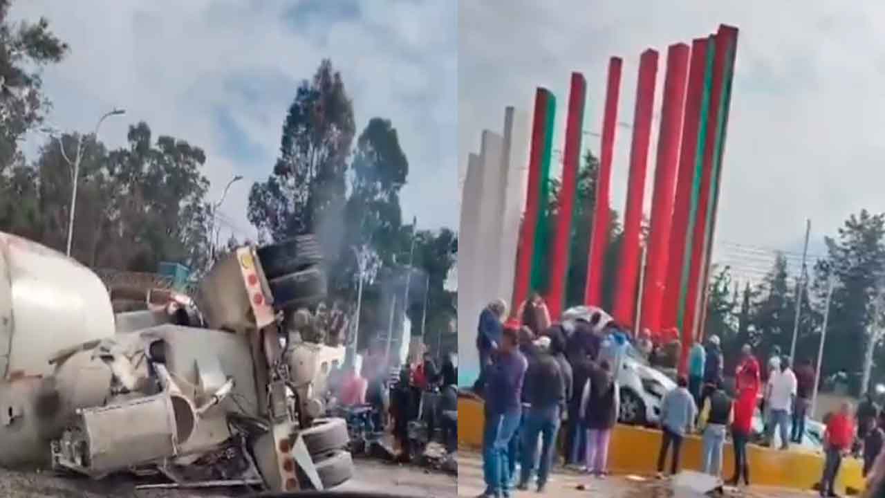 Almoloya de Juárez, Estado de México.– Una unidad tipo revolvedora de cemento fue captada en video luego de presuntamente quedarse sin frenos mientras circulaba por el centro del municipio, situación que derivó en un accidente vial de consideración.