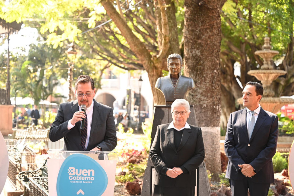 Zamora, Michoacán; a 18 de enero de 2026.– En el marco de las celebraciones por el 452 Aniversario de la Fundación de Zamora, el presidente Carlos Soto Delgado , acompañado de Leticia Laríos Hernández directora general del Centro Escolar Juana de Asbaje, encabezó la develación del busto del ilustre zamorano José Sixto Verduzco, sacerdote insurgente y figura clave de la Independencia de México, en la plaza principal de la ciudad.