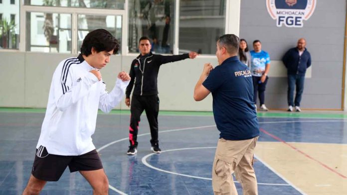 Morelia, Michoacán, a 21 de enero de 2026.- Como parte de las acciones orientadas al fortalecimiento de la salud física y el bienestar integral de su personal, la Fiscalía General del Estado de Michoacán (FGE) llevó a cabo una clase de box en sus instalaciones.