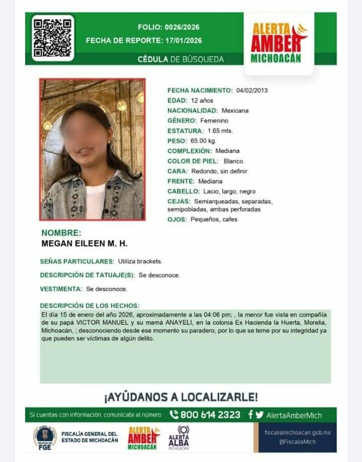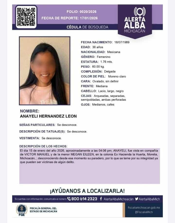 Morelia, Michoacán.- Víctor Manuel Mújica Vega y su esposa, Anayeli Hernández, de 37 y 36 años de edad, respectivamente, así como la hija de ambos, Megan Eileen, de 12 años, desaparecieron el pasado 15 de enero de 2026. Recientemente, la Fiscalía General del Estado (FGE) informó que fueron localizados sin vida.