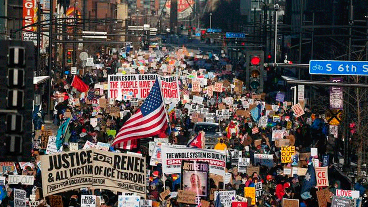Miles de personas se manifestaron en Minneapolis en rechazo a las operaciones del Servicio de Inmigración y Control de Aduanas (ICE), desafiando temperaturas que descendieron hasta los -29 grados Celsius. Las movilizaciones formaron parte de una jornada de protesta denominada “¡Fuera ICE!”, convocada por organizaciones sociales y sindicales.