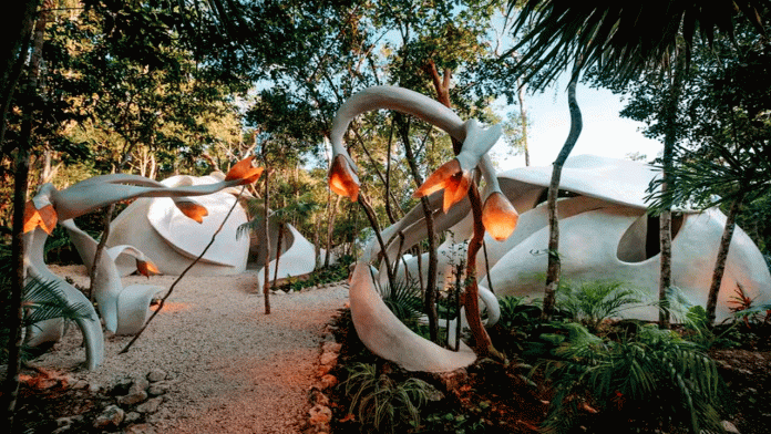 Uno de sus mayores atractivos es Kin Toh, el restaurante suspendido entre los árboles con mesas en forma de nidos, ideal para ver el atardecer. La propuesta se complementa con ceremonias de sound healing, spa holístico y acceso a museos como Sfer IK Uh May, un espacio artístico donde arte, naturaleza y espiritualidad se fusionan.