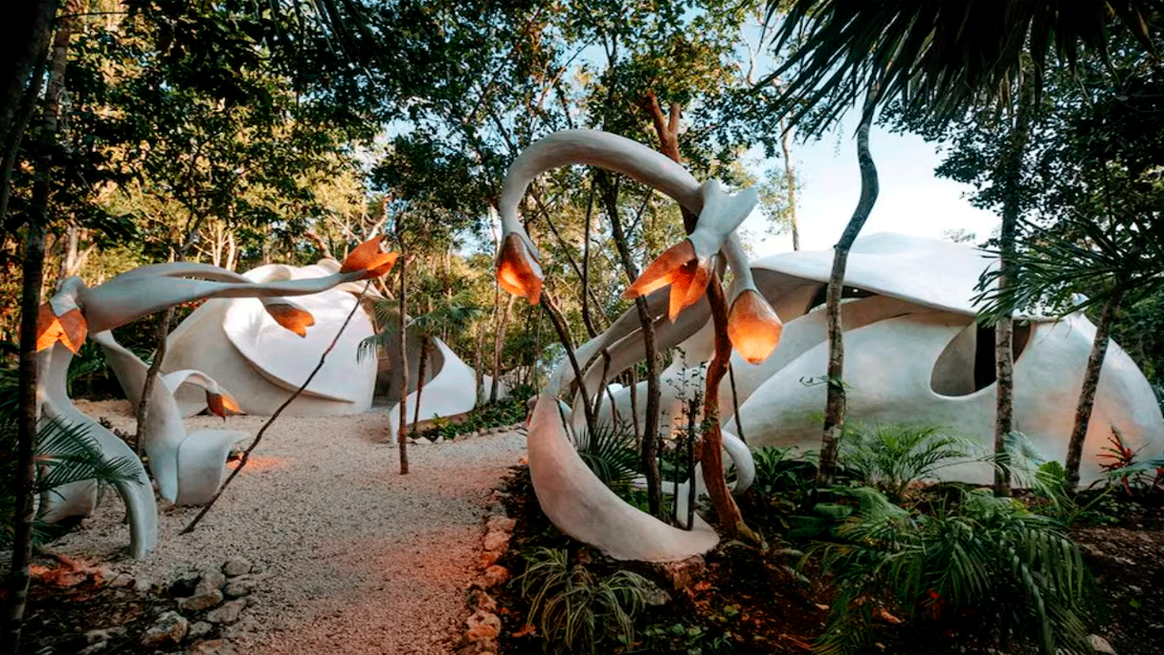 Más que un hotel, Azulik Tulum es una experiencia sensorial inmersa en la selva maya. Aquí no hay televisión, electricidad ni zapatos dentro de las habitaciones. Todo se ilumina con velas y el lujo se vive en silencio, entre madera, curvas orgánicas y sonidos naturales.
