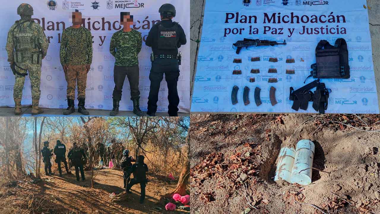 Posteriormente, en la localidad de Santiago Acahuato, las fuerzas estatales y federales localizaron el plantío de marihuana, mismo que fue incinerado conforme a los protocolos de actuación. Asimismo, se desmantelaron siete puntos de observación utilizados para la vigilancia de actividades ilícitas.