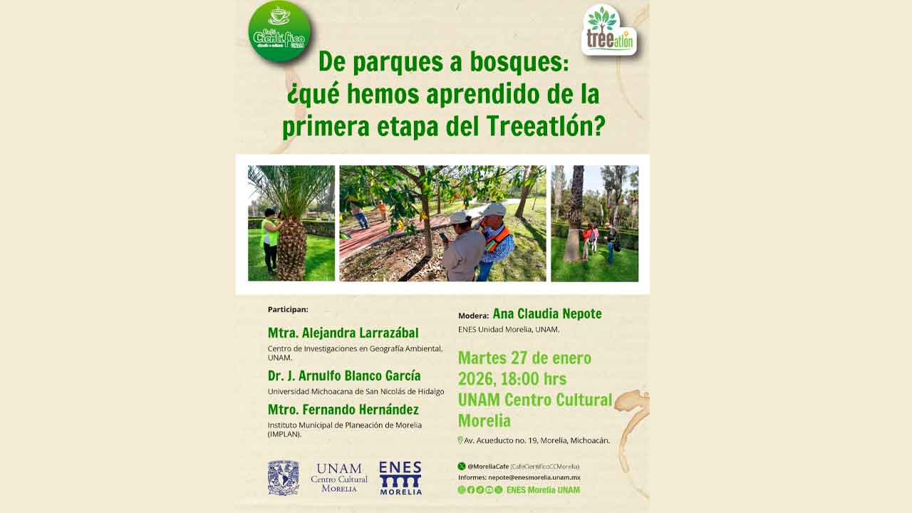 El evento forma parte del Ciclo de Café Científico de la UNAM Centro Cultural Morelia 2026, una iniciativa que busca acercar el conocimiento científico a la sociedad a través de conversaciones abiertas y accesibles. En esta ocasión, el encuentro reunirá a académicos, especialistas y público en general para discutir los beneficios ecológicos, sociales y urbanos de los árboles en la ciudad.