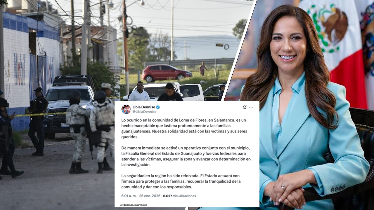 Salamanca, Guanajuato.— La gobernadora de Guanajuato, Libia Dennise García Muñoz Ledo, lamentó el ataque armado ocurrido la tarde del domingo 25 de enero en la comunidad de Loma de Flores, en el municipio de Salamanca, que dejó un saldo preliminar de 11 personas fallecidas —10 en el lugar de los hechos y una más mientras recibía atención médica—, así como seis personas lesionadas que continúan bajo cuidado médico.