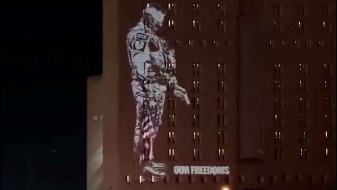 Las proyecciones fueron visibles durante la noche y formaron parte de una protesta pacífica en el centro de la ciudad.