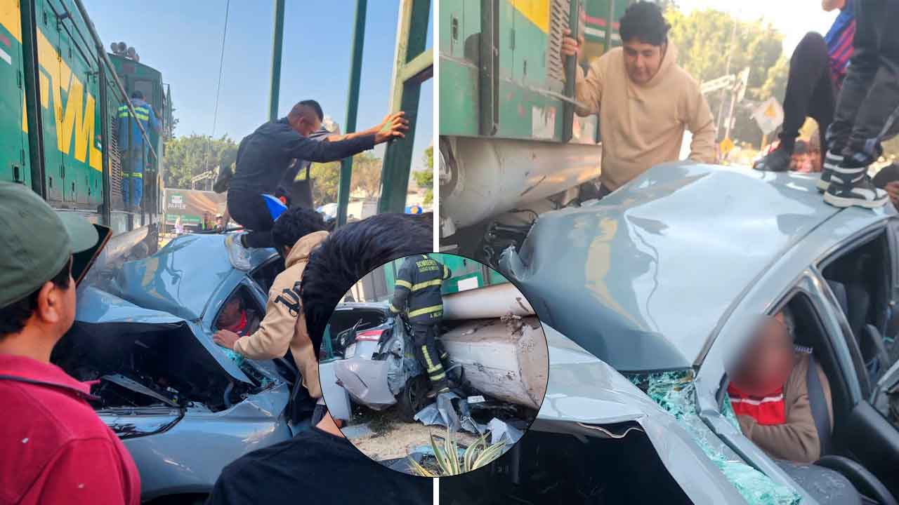 De acuerdo con los primeros reportes, el conductor del automóvil —un hombre de aproximadamente 60 años de edad— intentó ganarle el paso a la locomotora, pero el tren no pudo frenar a tiempo y lo embistió. El vehículo quedó prensado y con severos daños, atrapado entre la locomotora y estructuras cercanas de alumbrado público y semáforos.