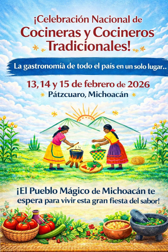 Por primera vez, Pátzcuaro tendrá una Celebración Nacional de Cocineras y Cocineros Tradicionales, donde se reunirá lo mejor de la gastronomía de México. Es un evento que pretende realzar el valor de quienes preservan la cultura, sabores y saberes del país, así lo dio a conocer Isrrael Fuentes Cuiriz, cocinero tradicional, quien destacó que la fiesta se vivirá del 13 al 15 de febrero en la plaza Vasco de Quiroga.