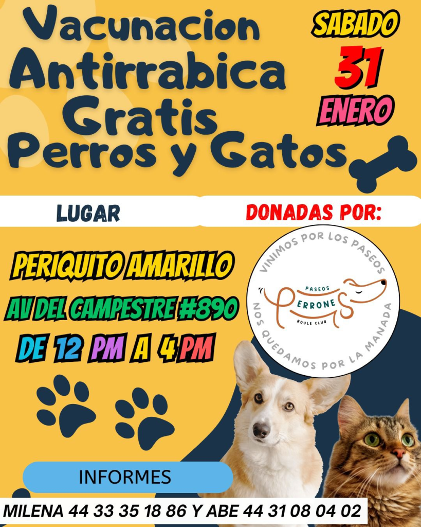 Como parte de las actividades, se ofrecerá vacunación antirrábica gratuita para perros y gatos, gracias al apoyo de colaboradores, y se estarán recibiendo donativos de croquetas selladas, tanto para perro como para gato, así como artículos de limpieza.