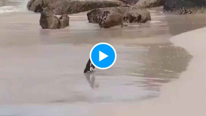 Una pareja de pingüinos fue captada caminando juntos por una playa de Sudáfrica, aparentemente “tomados de la aleta”, en una imagen que rápidamente se viralizó en redes sociales.