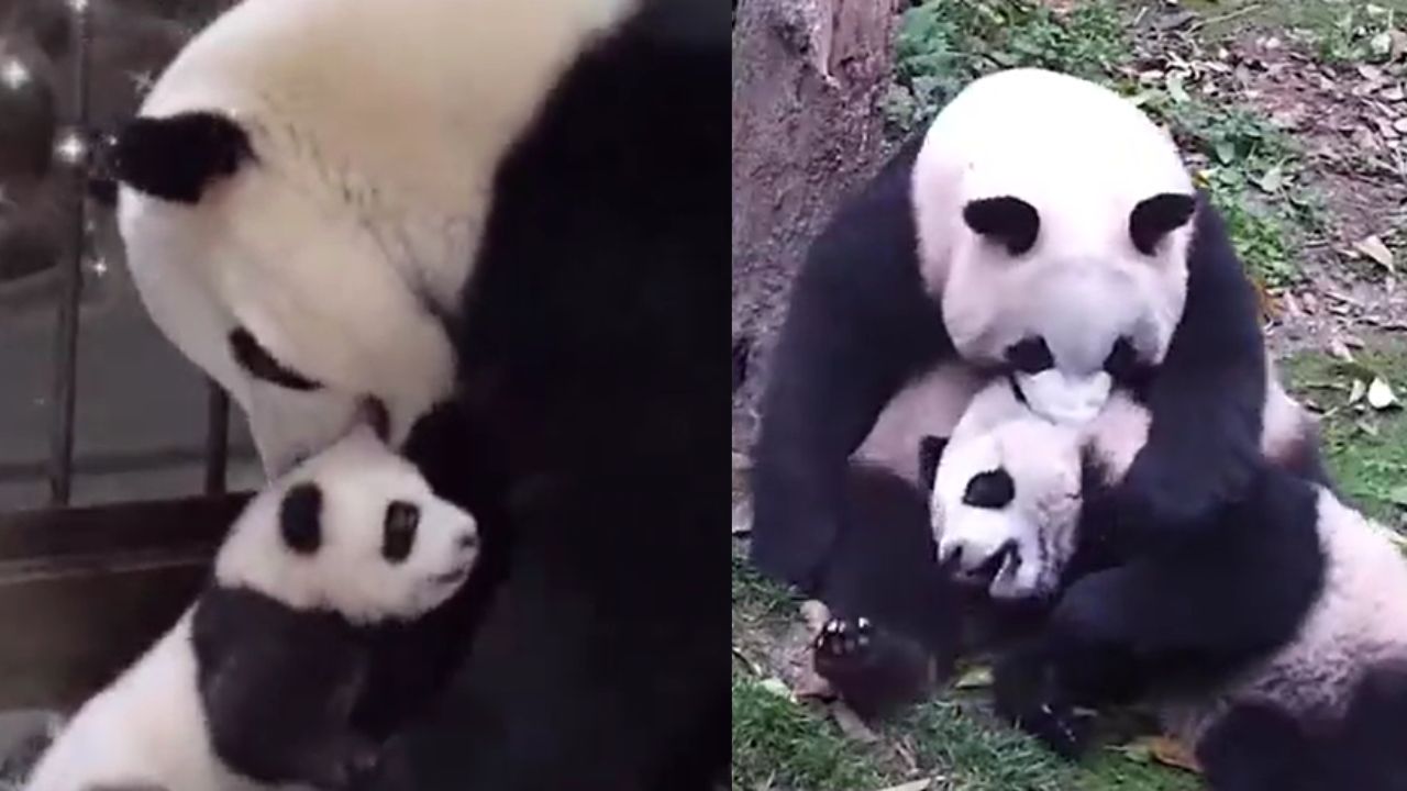 Abrazos, juegos y gestos de protección se repiten en cada etapa, provocando miles de reacciones y comentarios en redes sociales, donde usuarios destacan la paciencia, el cuidado y el instinto protector de la madre panda.